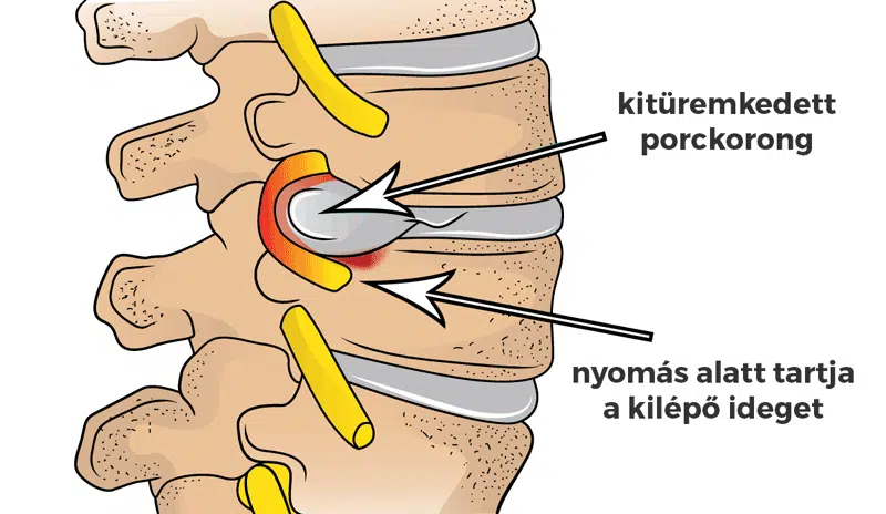 Gerincsérv (porckorongsérv) esetén a kiboltosuló porckorong nyomást gyakorolhat az ideggyökre. Ez lehet: